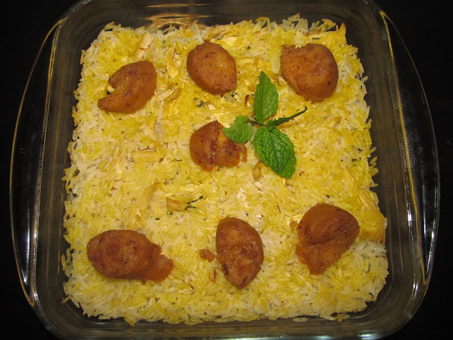 Num recipiente de ir ao forno colocar o arroz e a carne por camadas, pincelar com gema de ovo - acrescentar um pouco de água à gema para que seja mais fácil espalhar. Por fim cobrir com rodelas de alheira e levar ao forno cerca de 20 minutos a 180º.