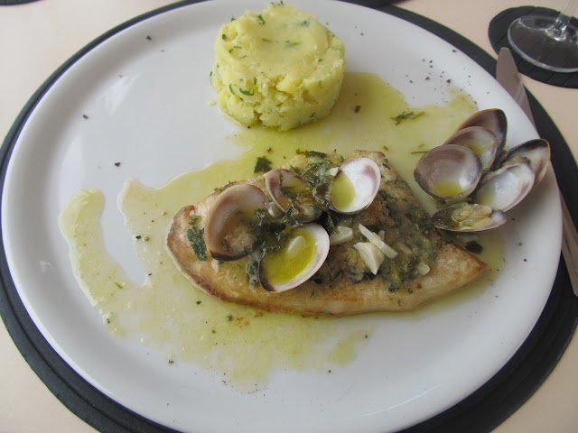 Este almoço teve um significado especial, cheio de amor, mas não me vou alongar quanto à história que o envolve, falarei sobre ela mais tarde. Basta o nome destes pratos para o texto se tornar extenso. Entrada 1. Codernizes braseadas com molho de escabeche. Entrada 2. Vieiras salteadas, chutney de manga, rúcula e parmesão. Prato 1. Espadarte com crosta de ervas finas, molho de bivalves e esmagada de batata. Prato 2. Magret de pato com morangos, batata dauphinoise e puré de cenoura. Sobremesa, Panna cotta com calda de laranja. Isto claro, regado com o belo vinho.