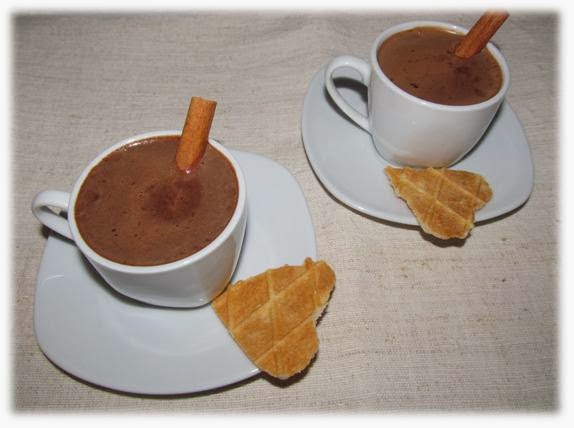 Colocar o chocolate em pedaços e o leite num tacho, juntar o pau de canela e colocar em lume brando até ferver, mexer com frequência para que a mistura fique bem homogénea e cremosa. No final juntar um pouco de pimenta. Servir bem quentinho.