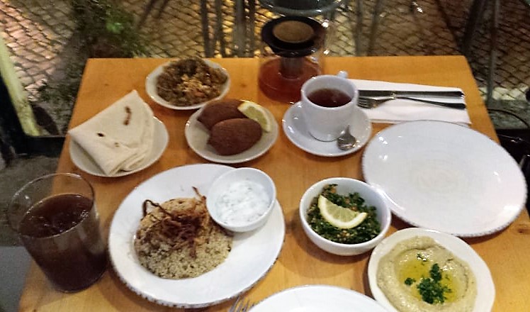 Uma festa de sabores desta região, uma mesa composta por pequenos pratos quentes e frios confecionados por refugiados sírios que apresentam com simpatia e trabalho uma comida praticamente caseira.