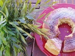 Retirar do forno. Deixar arrefecer. Desenformar e polvilhar com açúcar em pó.